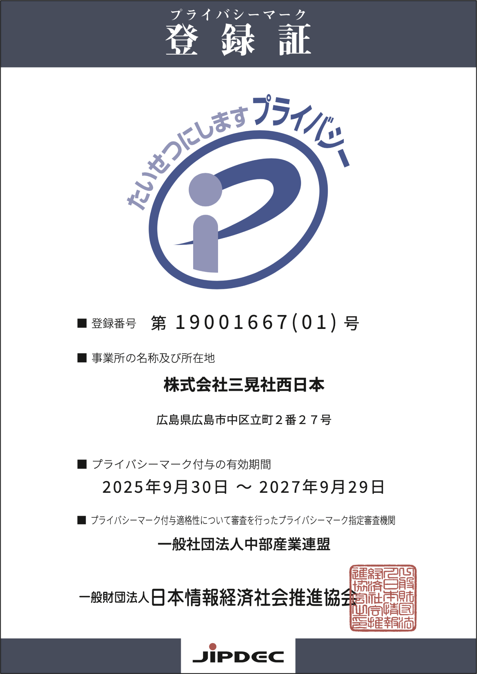 株式会社三晃社西日本(以下、「当社」という)は、企業の社会的責任を果たすとともに、企業使命である「生活者サイドのニーズをクライアントに提供できるマーケティングコンサル業」を具現化するために、全社を挙げて個人情報保護マネジメントシステムの実践に努めています。特に個人情報保護は重要事項と認識しており、下記の事項に基づいて、全ての役員、従業員の意識を高める教育啓発や、関連法規に照らした業務の改善などの諸施策を実現してまいります。